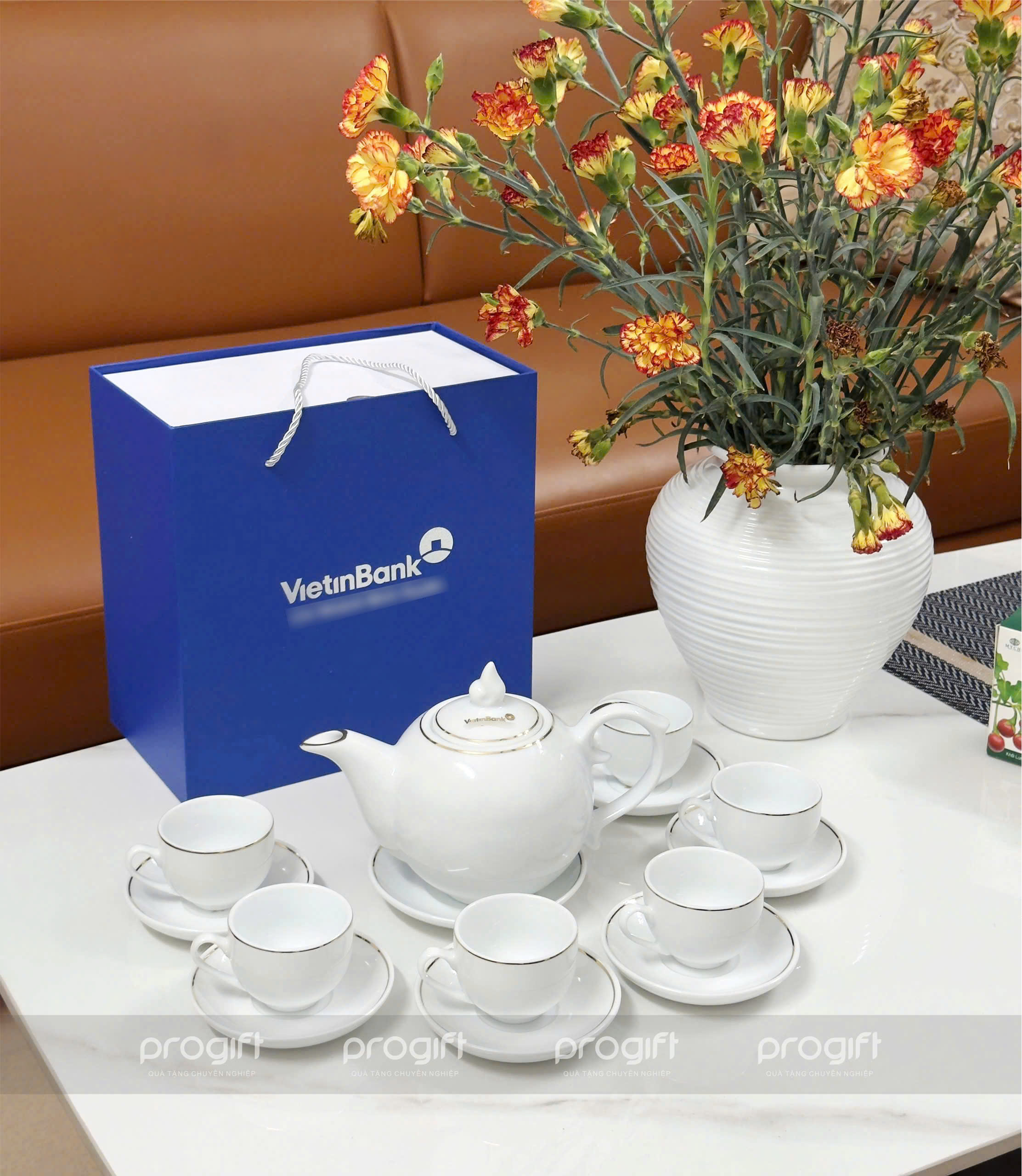 Quy cách: Bộ 1 ấm + 7 chén + 6 đĩa + hộp xi quà tặng