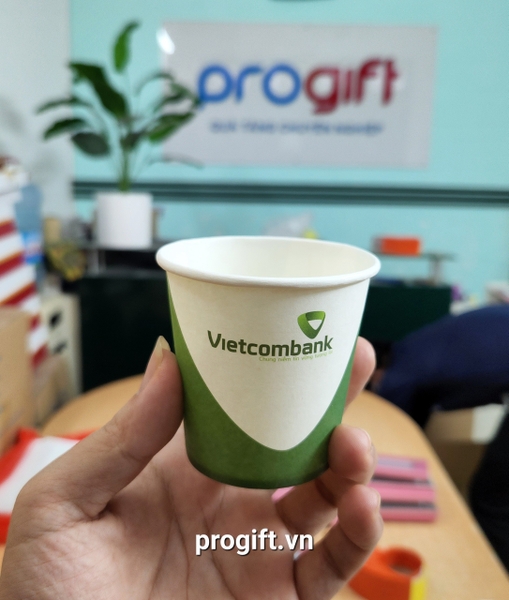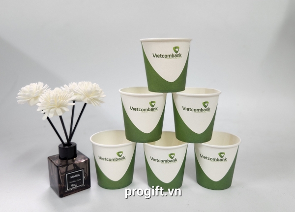 - Cốc giấy dùng 1 lần, in ấn logo theo nhận diện thương hiệu vietcombank