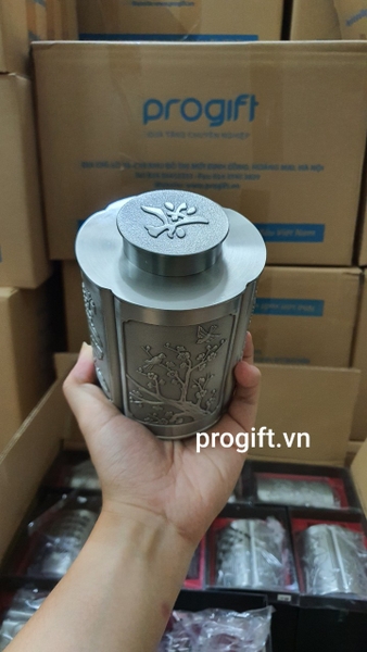 Thiết kế bình trà thiếc độc đáo, cổ điển, với hoa văn đắp nổi xung quanh bình mang lại sự sang trọng cho món quà tặng và người sử dụng.