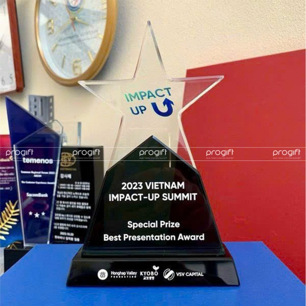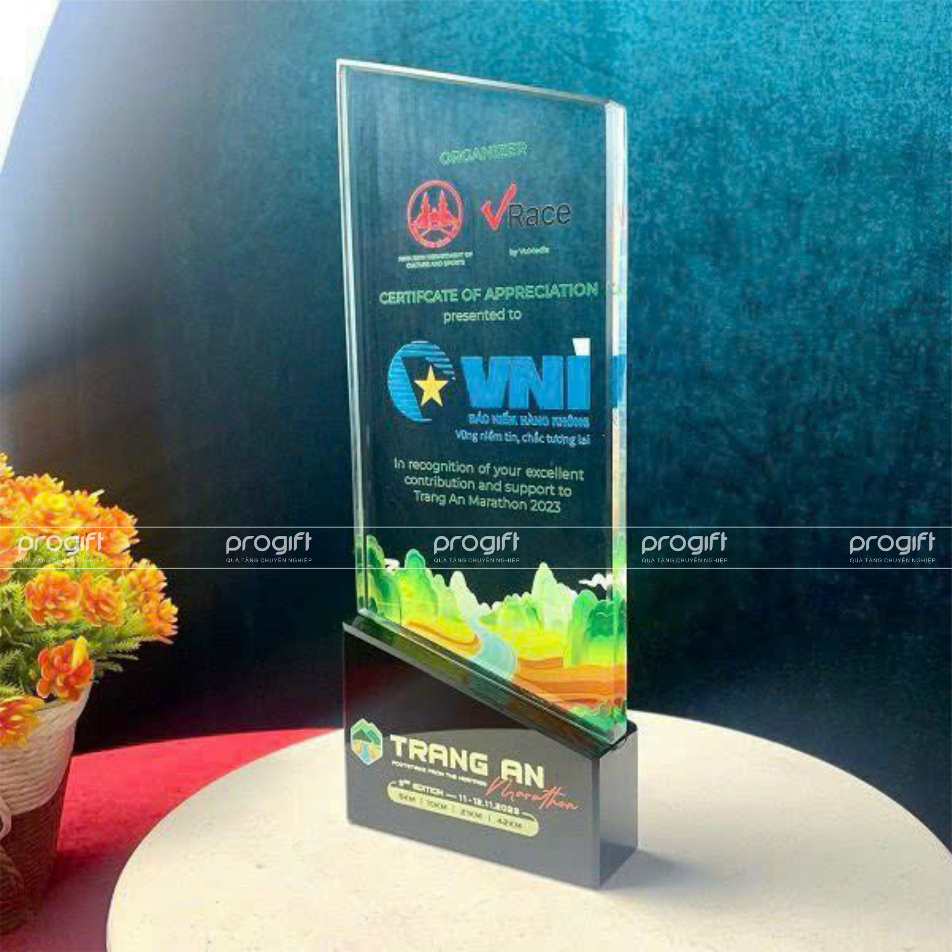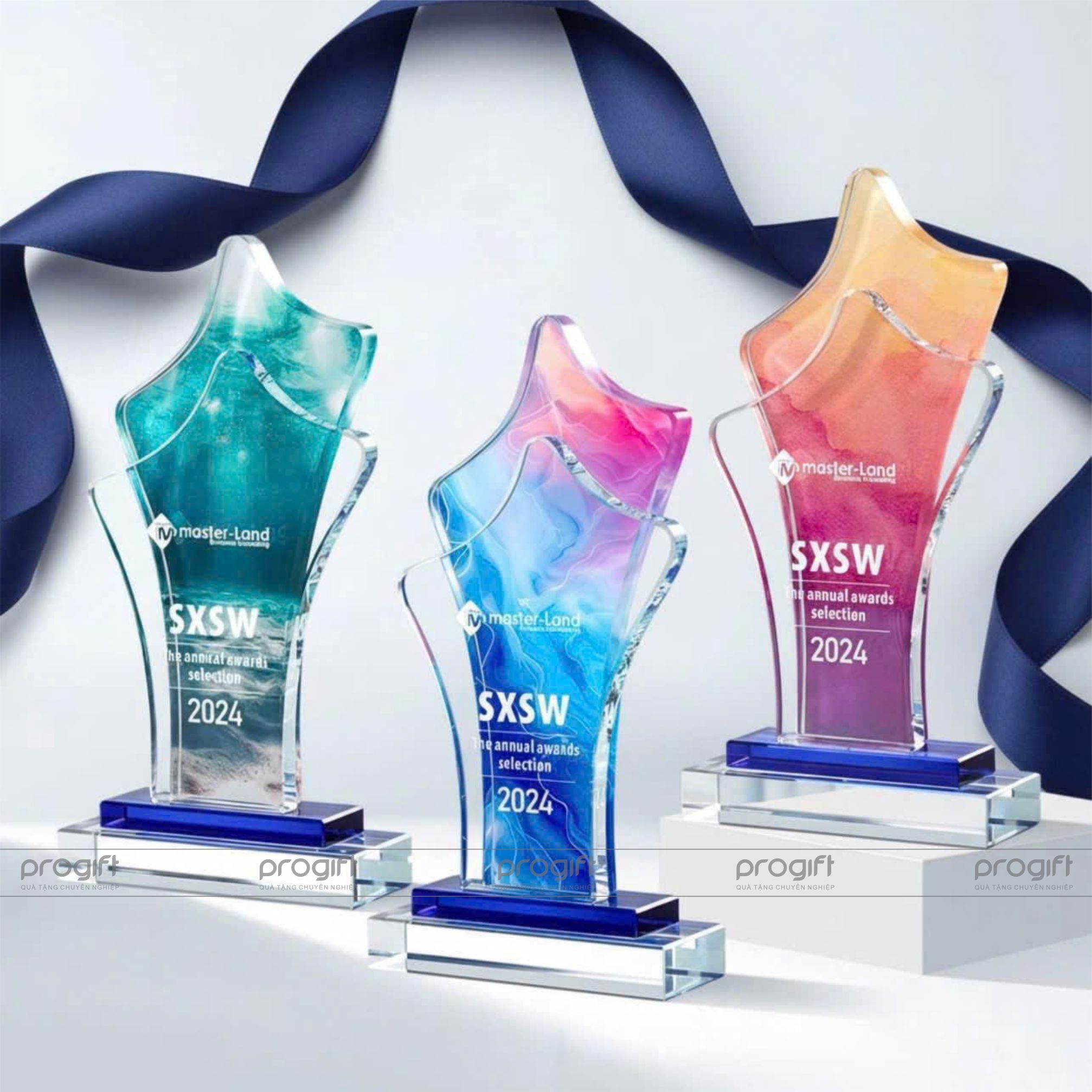 PROGIFT nhận sản xuất kỷ niệm chương pha lê theo thiết kế riêng, phù hợp với từng sự kiện và bộ nhận diện thương hiệu của doanh nghiệp.