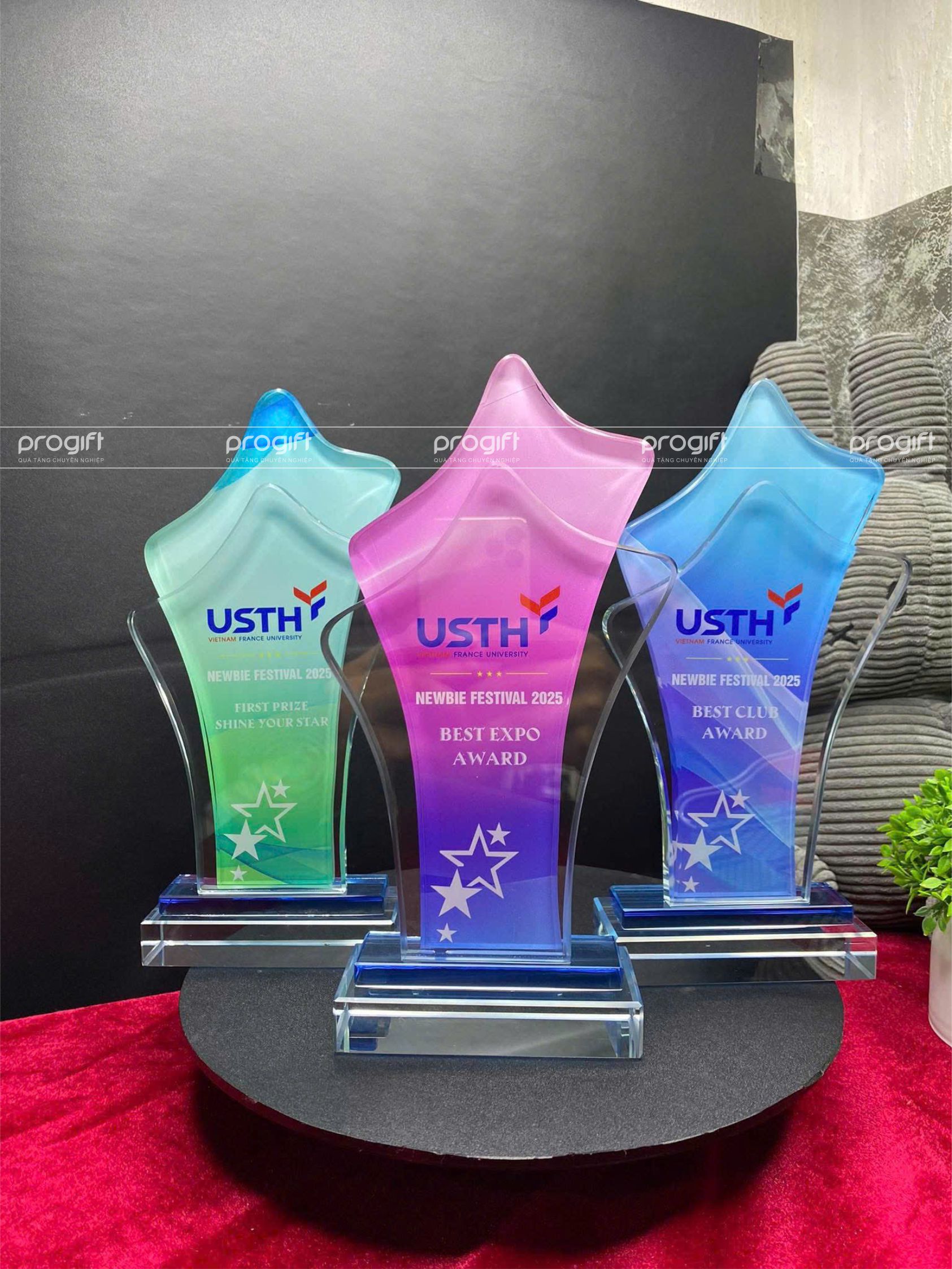 Với chất liệu pha lê trong suốt, sáng bóng, các mẫu biểu trưng tạo nên vẻ đẹp tinh tế, trang trọng và bền vững theo thời gian, rất phù hợp để lưu giữ những dấu mốc quan trọng.