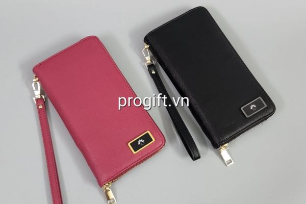 Quà tặng doanh nghiệp - Ví da Golf Clutch logo BIDV mạ vàng